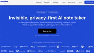 Bluedot AI Note Taker is bot-free, which matters more on sales calls than almost anywhere else. Most note-taking tools join your call as a named participant “AI Notetaker has entered the meeting” which creates an awkward moment with prospects who weren’t expecting it. Bluedot records through a Chrome extension or desktop app, entirely on your end, with nothing appearing in the attendee list.